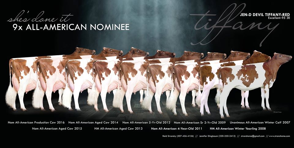 FEMALE Red & White embryos sired by Farnear ALTITUDE-RED (+2.84 PTAT / +14 Conf.) (not available in Europe) are selling from the 2x Grand Champion R&W Show World Dairy Expo: Strans-Jen-D-Tequila-Red EX-96-USA 2E. This extraordinary show cow won multiple more titles on the coloured shavings in Northern-America such as: Senior & Grand Champion WI State R&W Show 2017, Grand Champion Midwest National Spring Show (between B&W's) 2016, Unanimous All-American R&W 4-Yr Old 2015 & many more! Her daughters won Junior Champion at World Dairy Expo: Milksource Thunder-Red - Supreme Champion Heifer WDE 2019 & Milksource Taelyn - Junior Champion Heifer WDE 2018. Tequila her dam is the 9x All-American Nominee: Jen-D Devil Tiffany-Red EX-95-USA 3E. Click further for more info about this rare and special lot in the Eurogenes Online Embryo Sale.