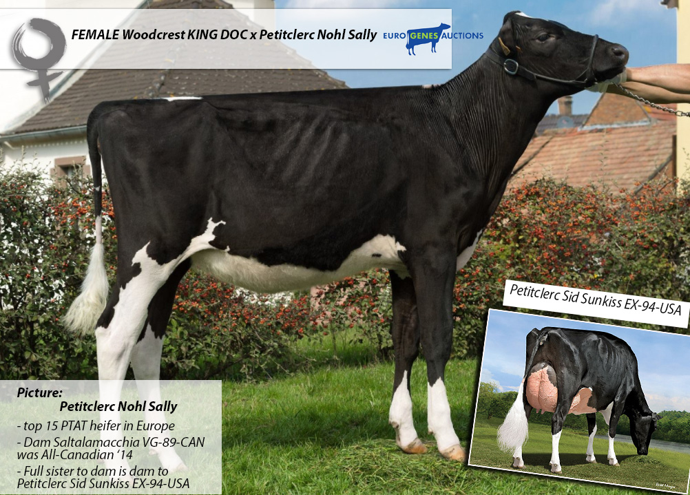In the Online Embryo Sale are exclusive FEMbryos by Petitcler Nohl Sally selling. Petitclerc Nohl Sally is a top 15 PTAT ranking Archrival daughter of Petitclerc Gold Saltalamacchia VG-89-CAN (MAX) 2yr. with +3.56 PTAT. Saltalamacchia was All-Canadian '14, 1st in class at the Royal Winter Fair '14 & Res. Intermediate Champion Montmagny '14. Her full sister is the dam to Petitclerc Sid Sunkiss EX-94-USA, which sold for $ 150.000.
