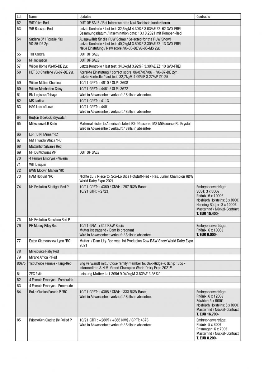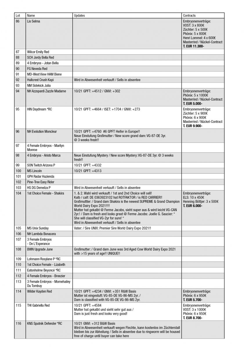 The FINAL SALE UPDATE of the German Masters Sale is now ONLINE available!! This SALE UPDATE also includes the embryo contracts of the great lots selling in the German Masters Sale 'LIVE SALE'. Click further to view the complete sale update.