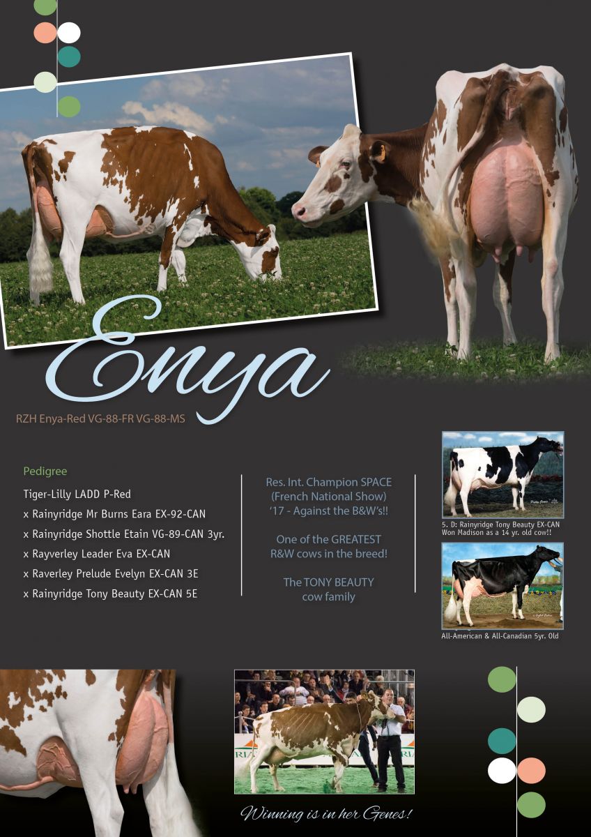 The very first available FEMALE JORDY-RED embryos are selling in the Eurogenes Online Embryo Sale from one of the greatest R&W cows in the breed: RZH ENYA-RED - from the Tony Beauty / Talent Barbara cow family! Click further for her advert.