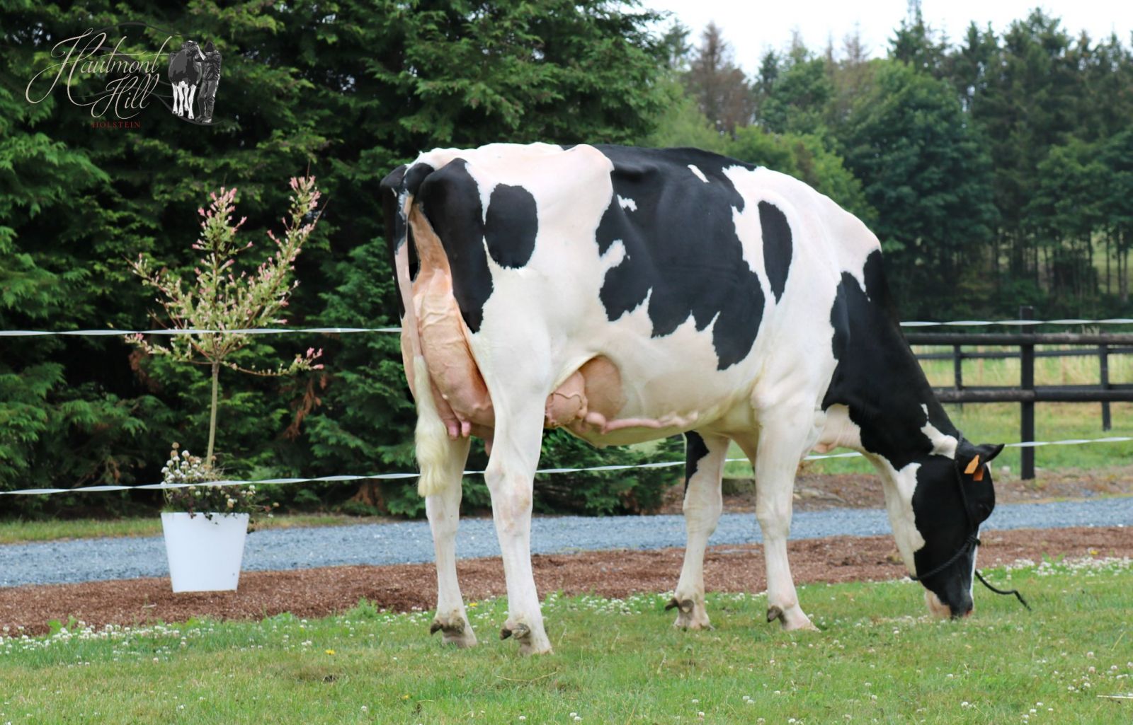 This pretty young cow sired by Oh-River-Syc Crushabull is classified with VG-88-NL as 2yr. old with VG-88 for her Mammary System, meet: Hautmont Hill Crushabull Belly Kiss! She won already many ribbons. As maiden heifer is she sold from Hautmont Hill Holsteins to Hullcrest Holsteins, fam. Groot and M. Vries, where she became 2yr. old Champion B&W at the Summer show '22 and was Junior Champion Online Wintershow Zuidwesthoek '21. As heifer she was classwinner & Junior Champion at the Agrimax in Metz 2020. Her dam is Golden Dreams daughter: Hautmont Hill Golden Dream Belly Dream EX-90-BE.