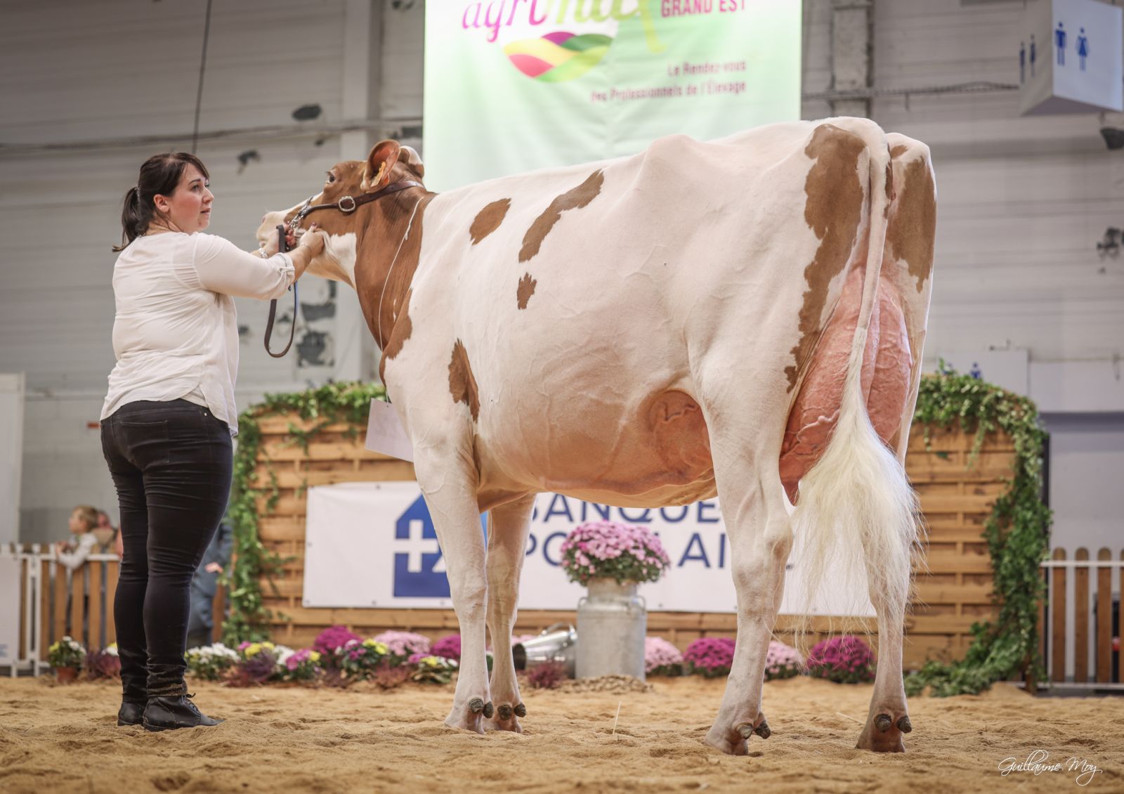 Gaec Wilt had a fantastic show last weekend during the Agrimax 2022! They took 5 cows to the show and took 5 Champion Titles home. Wilt Bad Alina VG-88-FR 2yr. became 1st in the Red&White class and became later that day Grand Champion Red & White! She is a very promising Castel Bad daughter out of Ms Farnear Adler Arvis Agrovia VG-88-FR 3yr., she is an Arvis daughter straight out of the Grand Champion Iowa State Fair 2019: Ms Farnear Aria Adler EX-96-USA. Another big success was for the amazing Fitz daughter: Wilt Fitz Elaya EX-93-FR EX-94-MS La3. She became 1st in her class with Senior cows and was also named as Senior Champion and Grand Champion Black & White Holstein cows. She is a close family member to Wilt Emy EX-95-FR.