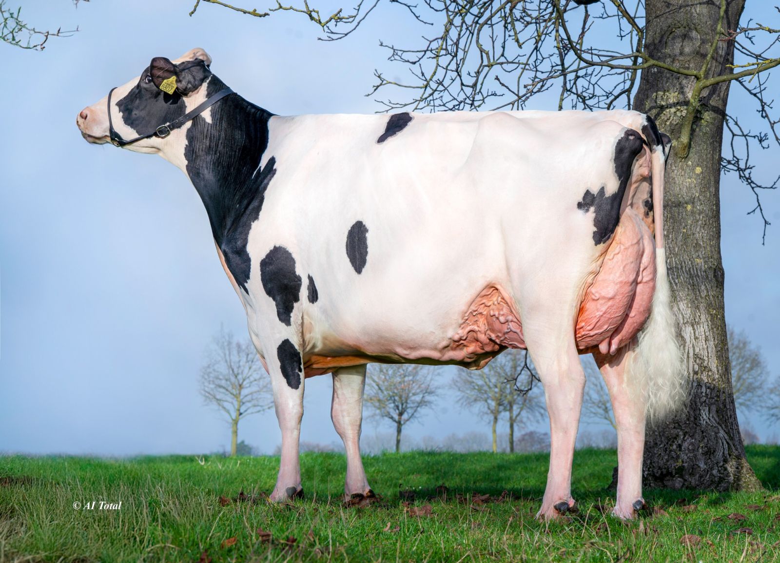 Gen Bibian VG-86-NL 2yr. is fresh again! She is 8 weeks fresh now and has a current day production of 48kgM. She is in 305 days projected at 13.272kgM with +966kg combined F+P! Bibian VG-86-NL VG-87-MS 2yr. is sired by Haniko and goes back on to the Regancrest-PR Barbie EX-92-USA family. She is dam to DG Blackburn @ AI-Total, a Davinci son at +3.06 PTAT and +15 Conformation with +10 Mammary System. Gen Bibian VG-86-NL VG-87-MS 2yr. is still one of the highest PTAT Cows (>2 Years) in Europe at +3.48 PTAT, +2.20 UDC and +13 Conformation. Her dam is Undenied daughter Gen Brylo VG-86-DE VG-89-MS 2yr., from Col DG Brylin VG-86-DE VG-87-MS 2yr. Brylin is a Crush daughter, dam to Col Kingmaster (s. King Doc) @ Synetics and is sister to the TYPE sires: Col DG CRUSHTIME and Oh-River-Syc CRUSHABULL!