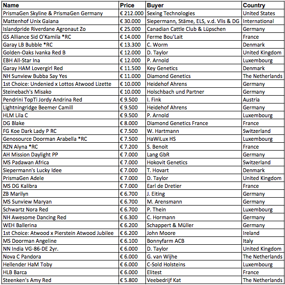 The complete pricelist can be found through www.livedairyauction.com