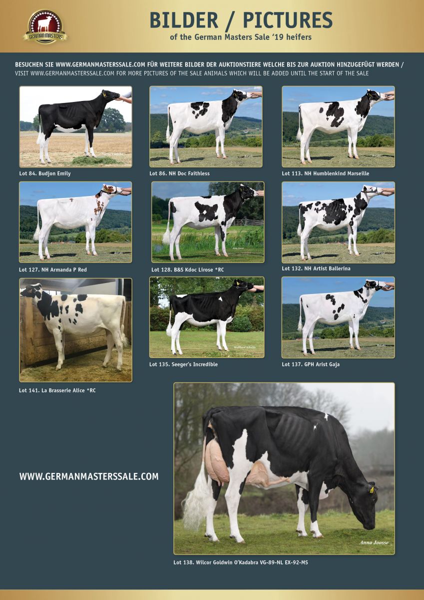 A not to miss event for any breeder in Europe: the 5th GERMAN MASTERS SALE 2019 which will take place on Friday, the 18. of October 2019, this year again at the new location the brand new RUW Auktionshalle in Fließem, Germany, only 5 minutes from Bitburg. The catalogue is NOW ONLINE on the German Masters Sale website, where you can also order your FREE catalogue by post! Click further for more information.
