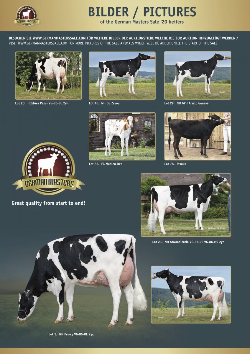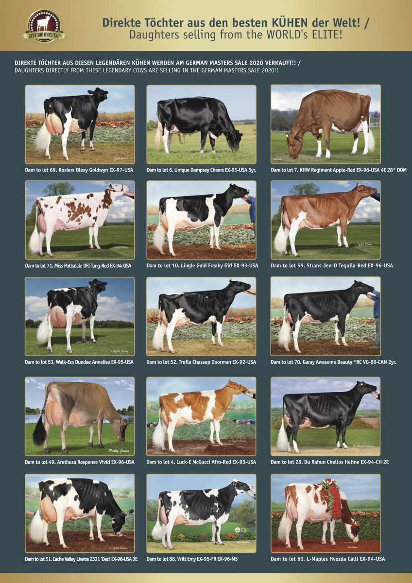 A not to miss event for any breeder in Europe: the 7th GERMAN MASTERS SALE 2020 which will take place on Friday, the 16. of October 2020, this year as an Online Tag+ Sale with at Friday the 16th an Open Barn in the brand new RUW Auktionshalle in Fließem, Germany, only 5 minutes from Bitburg. The catalogue is NOW ONLINE on the German Masters Sale website, where you can also order your FREE catalogue by post! Click further for more information.