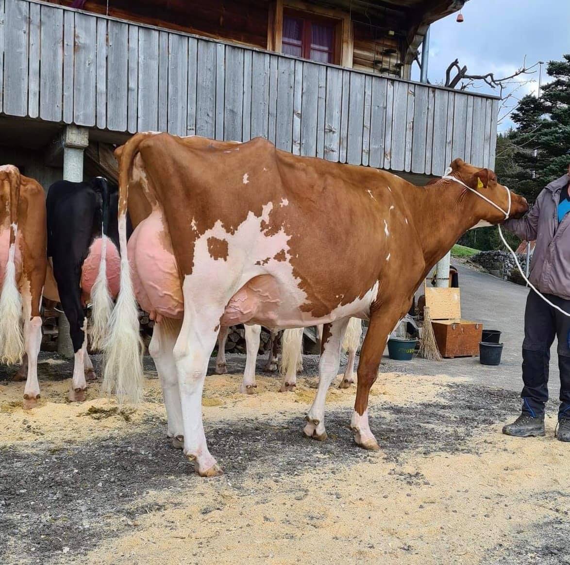 HAM Diamondback Beaujolais-P is a beautiful third calver by Diamondback *RC which sold through the German Masters Sale 2017 to her owners Rebin Holstein in Switzerland. Last week on April 28th she raised her score to EX-91-CH with EX-91 for her Mammary System as a third calver. This beautiful R&W is a grand daughter of the 4th 5-Yr Old All-American Dairy Show '15: Greenlea-TM Atwood B-ET EX-94-USA. Her 3rd dam is the Res. Grand Champion @ Madison: Cherrie-Kreek Beulah-Red EX-92-USA. This extraordinary family also delivered Pamprd-Acres AB Ivy-Red EX-94-USA - 1st 5-Yr Old Illinois State Holstein Show 2019. Ivy her RED CARRIER Diamondback daughter is at Batouwe Holsteins & Schouten Holsteins. Beajolais P brought her owners Swissbec Power-Red & Wilcor PG Achilles-Red heifer calves.