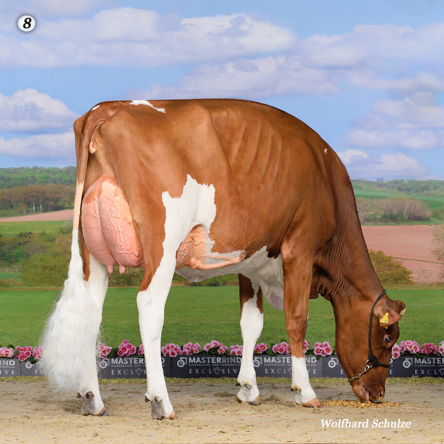 Germany's best 2-Yr Olds are selling in the Masterrind 'Die Auktion' next Wednesday evening at 19:30 (German-time). Selling are two MAX-scored 2-Yr Olds in Germany, only around five 2-Yr Olds are getting this score every year in Germany, offered by Canadian Cattle Club & Colonia Cows. Canadian Cattle Club offers a Undenied grand daughter from the popular brood- & show cow Walnutlawn McCutchen Summer EX-95-USA with 36,8 kgM with 3.51% protein in her 4th test. Colonia Cows offers either a MAX-scored 2-Yr Old by Undenied: Col Freya VG-88-DE VG-88-MS 2yr. She is bred to NH DG Arrow and still counts +142 RZE which makes her belong to the top 5 RZE females in Germany. She traces back to the Quality Astre Felic EX-95-CAN family. Mox Holsteins offers a VG-85-DE 2yr. R&W Absolute-Red (Premier Sire WDE) grand daughter of Mox Kite Maryrose EX-90-CH with currently 37,0 kgM / day. Batouwe Holsteins & Schouten Holsteins have consigned the very first milking daughter by Jacoby from the former #1 PTAT Cow in Europe: HC Archrival Arianne VG-89-NL EX-91-MS (MAX) 4yr. This showy Jacoby daughter scored VG-86-DE 2yr. with VG-86-MS her mammary system and could be yours!!