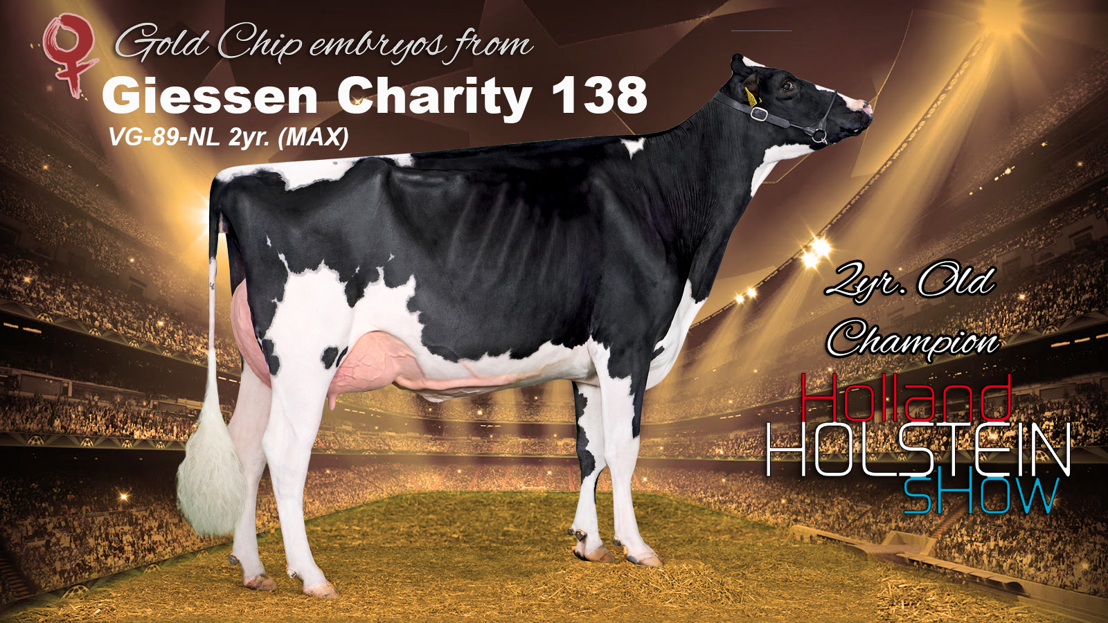 Giessen Charity 138 is recenlty classified with the MAX-score of VG-89-NL 2yr. with a VG-89-MS in the Netherlands!! This extraordinary Atwood daughter won the Holland Holstein Show 2018 & Wintershow Wanneperveen 2018 last month! She is from the huge family of Brookview Tony Charity EX-97-USA and has several show winning dams. Her dam was also presented at the HHH-Show '18 and was 3rd in her class. Charity 138 her 4th dam is the Grand Champion National NRM Show 2004: Charity 504 EX-94-NL. From Charity 138 are FEMALE Gold Chip embryos selling in the Online Embryo Sale.