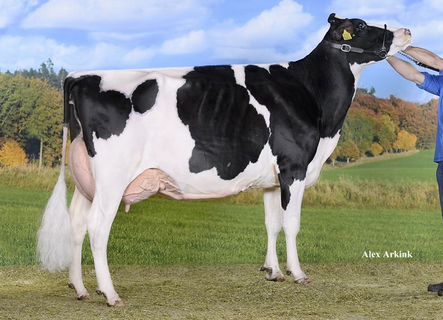 Giessen Charity 138 VG-89-NL 2yr. (MAX), she won as 2yr. old many different titles, like: 2yr. old Champion National NRM-Show '19 & HHH-Show '18, 2yr. old Champion RSN Show '19, 2yr. old Champion Wintershow Wanneperveen '18, 5th place at the European Show Libramont '19 and more! Her daughter, sired by Moovin *RC, Giessen Charity 253 following her footsteps with great results at her first show as a milker, very fresh and in the youngest milking class of the National HHH-Show '22. She won her class and became 2yr. old Champion Black&White! These amazing showwinning cows are tracing back to the 4x Grand Champion: Brookview Tony Charity EX-97-USA. Grand dam to the Moovin *RC daughter was Grand Champion Wintershow Pesse '19: Giessen Charity 37 EX-91-NL.