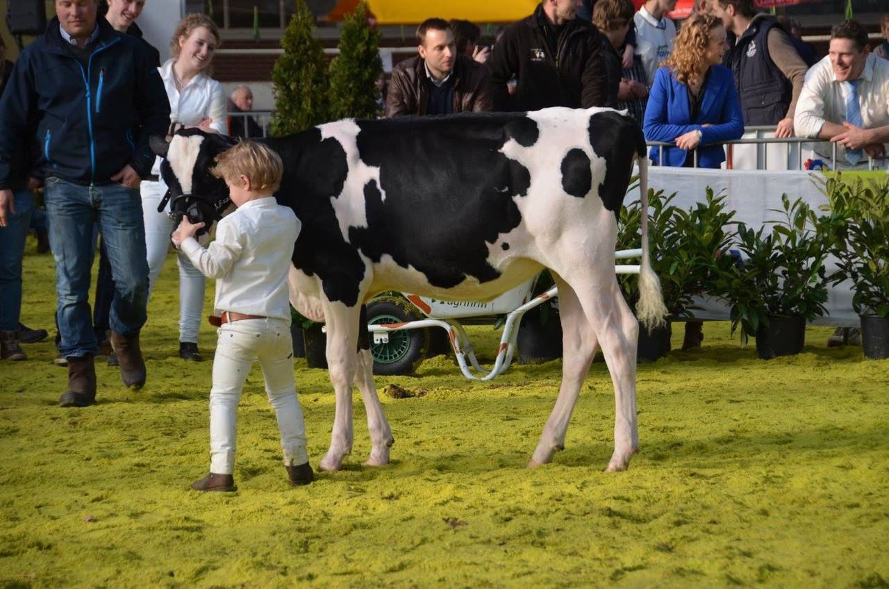 The Drentse Wintershow held last Saturday in Pesse (The Netherlands) judged by the English judge Ben Yates, ben tapped the Million dtr Giessen Charity 44 as his Grand Champion of the day. Charity was the HM Intermediate Champion of the HHH show 2014 and beated the Grand Champion of the HHH show Marie 356 which became Reserve Champion. Great results as well for Hullcrest Holsteins with I-Cow Aurora (Gold Chip x BVK Atwood Arianna) winning the Calf Class and Scholten Dairies winning the Heifer Class with Fradon Delicious (Goldwyn x Durham x Chief Adeen)!