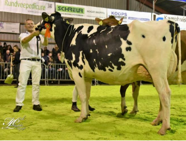 Giessen Cinderella 79, daughter of the incredible type bull Atwood has won the Grand Championships at the Winter Night Show in Wanneperveen! Just one week before she already won her class at the National HHH Show, and just as her name says: she stems from the ultra-popular Cinderella cow family, the family behind Ciderman & Control.