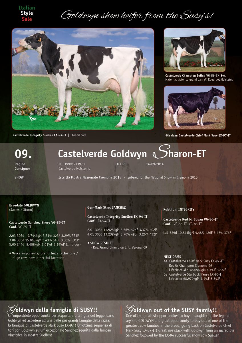 One of the greatest opportunities for the real show enthusiast will rises on Friday, October the 30th during the Italian Style Sale in Cremona, Italy! Lot 9 is one of the greatest global opportunities to buy a daughter of the legendary GOLDWYN and one of the greatest possibilities to buy out of one of the greatest Italian cow families ever, that of Castelverde Chief Mark Susy EX-97-IT! A family which delivered huge show success on international level and produced tremendous cows generation after generation! Lot 9. Castelverde Goldwyn Sbang, a November heifer which will as well be shown during the National Show on Friday!