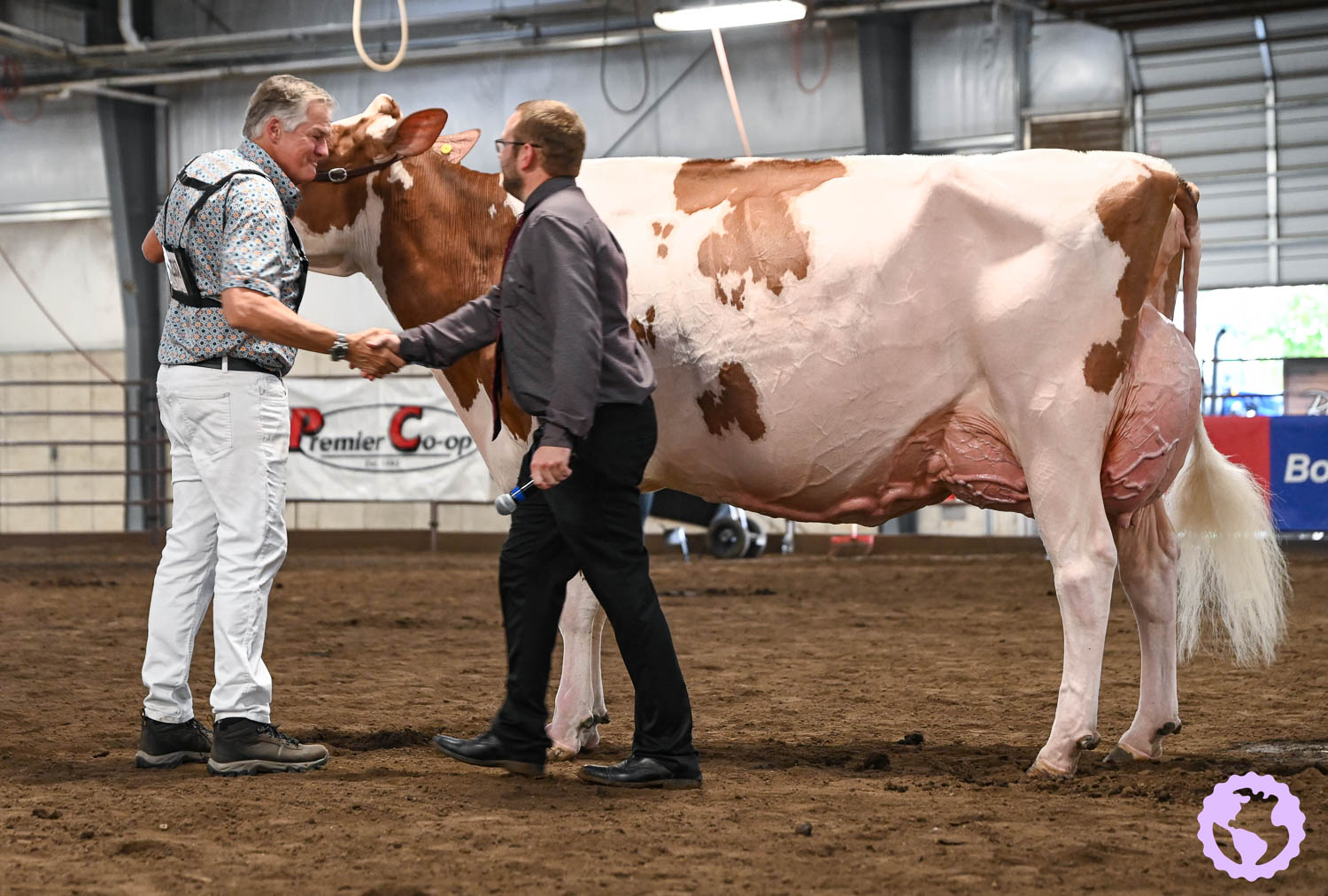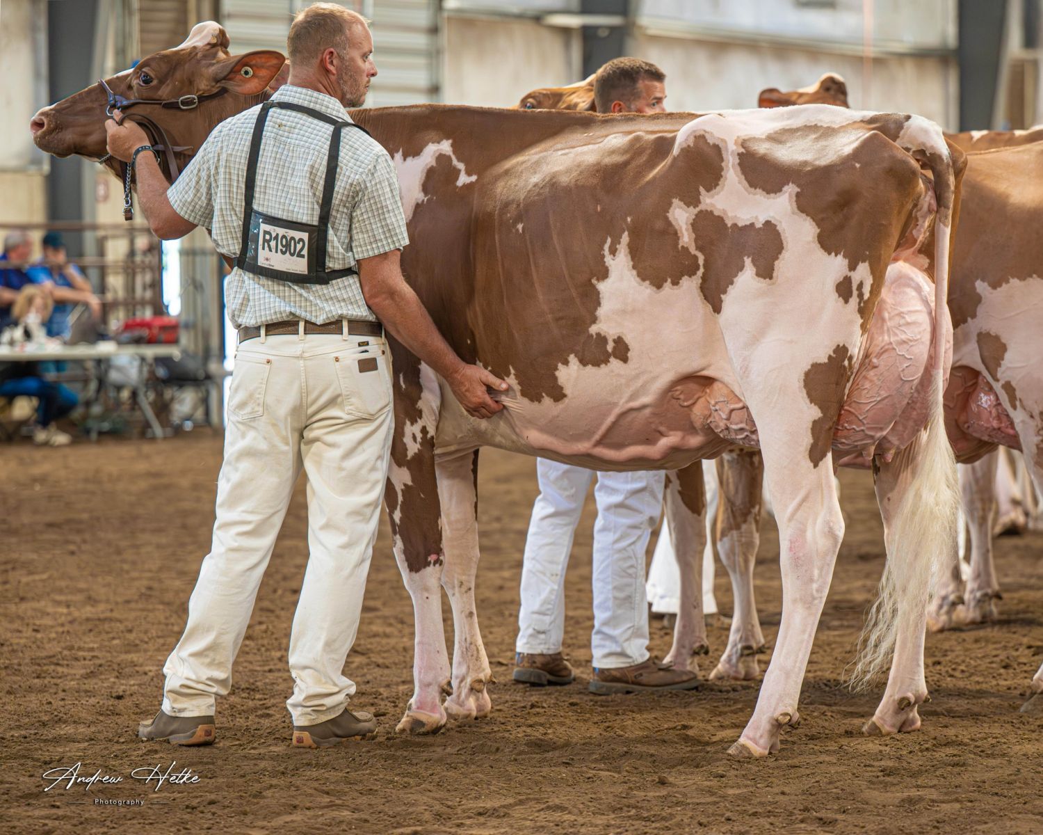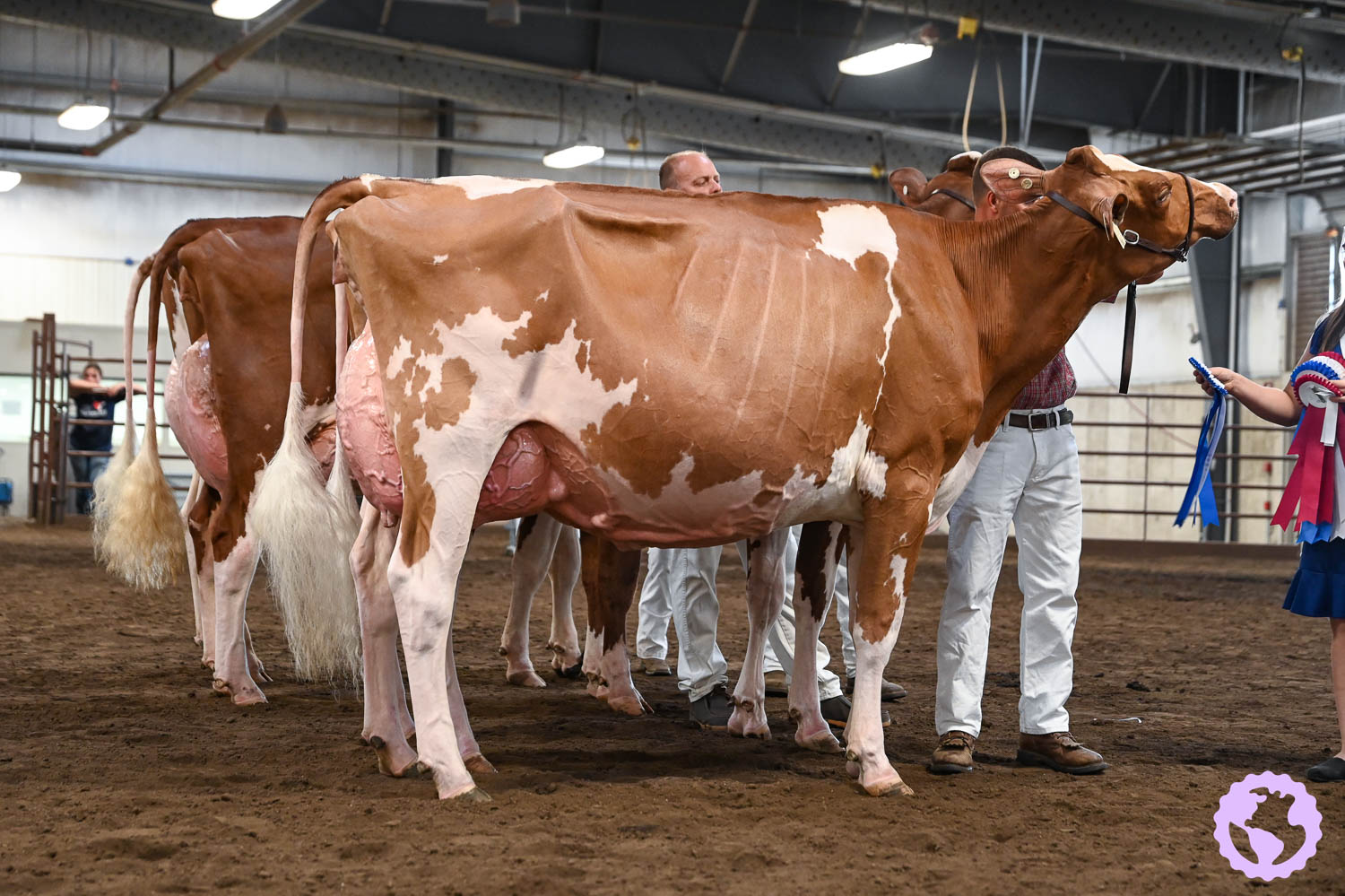 Golden-Oaks Temptress-Red is the new Red & White Grand Champion of the Wisconsin Championship Red & White Show 2025. Judge Josh Fairbanks tapped the Unstopabull-Red daughter, that is no stranger in Wisconsin for his Grand Champion, she is exhibited by Milk Source, Fischer, Steinhagen & Crescentmead of Kaukauna. The Senior 3yr. old Durkacres Apple Tonic-Red became Reserve Grand Champion of the Red & White show after she became Intermediate Champion of the Open Show. She is sired by Rager-Red and goes back on KHW Regiment Apple-Red EX-96-USA. Another Apple-Red EX-96 offspring became Honorable Grand Champion of the show: Durkacres Apple Tonic-Red.