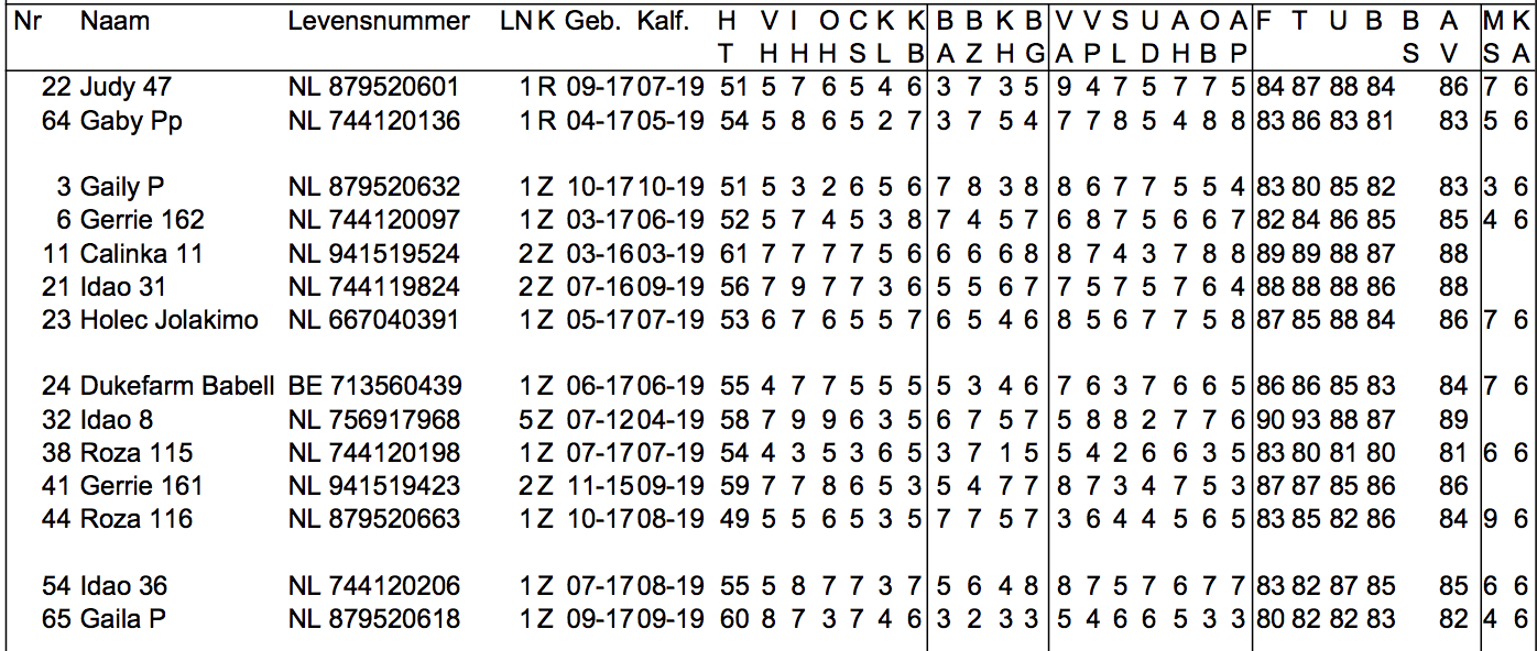 It was a great classification round for Beeze Holsteins last month with an average of 83,8 with 8 B&W scored 2-Yr Olds! Two R&W 2-Yr Olds scored scored both representative VG-86-NL 2yr. and GP-83-NL 2yr. The donor dam Holec Jolakimo scored VG-86-NL 2yr. with VG-88 for her mammary system. Her herdmate Dukefarm Babella an early fresh Bandares daughter scored GP-84-NL 2yr. with VG-85-MS. Also several cows were scored again with topping this day: Beeze Idao 8. She scored VG-89-NL with EX-93 for type with her 5th calf. Beeze Calinka 11 and Beeze Idao 31 both scored VG-88-NL with their second calf.