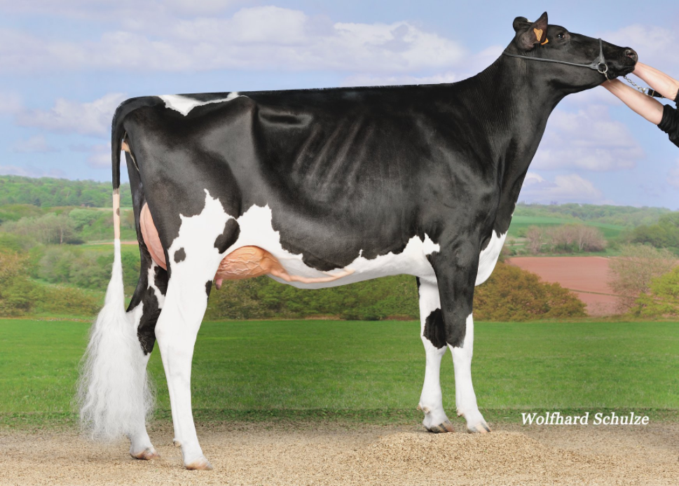 Leonore Du Neuhof at Ferme Gutzwiller in France is an incredible young cow, sired by Doorman out of Mars Bliss EX-91-DE EX-MS. Mars Bliss was delivered as embryo by Diamond Genetics and later sold through the Vente Drakkar to Mox Holsteins, Germany where she scored EX-91! Bliss is the full sister to the successful proven type sire Yorick! Leonore has an incredible young full sister @ Panda Holsteins in the UK.