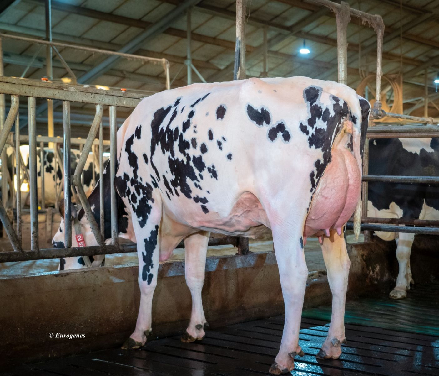 A great result from the Diamond Genetics breeding programm, meet DG Celesta! She is a fancy Parfect daughter in her first lactation, classified with VG-86-NL 2yr. with the maximum score of VG-89 for her Frame! She has a day production of >50kgM and produced now in 141 days already 7.262kgM. She is dam to a polled Hanx P son at +3172 GTPI / +2.69 PTAT and will be soon available through the AI-Total portfolio! Celesta VG-86 2yr. is straight from a Mitchell daughter followed by King Doc daughter Larcrest Celandine EX-90-USA and goes back on the worldfamous broodcow Lacrest Cosmopolitan VG-87-USA. This family delivered many sons to AI, with for example Larcrest Commander, Larcest Cancun, Larcrest Casual and more!