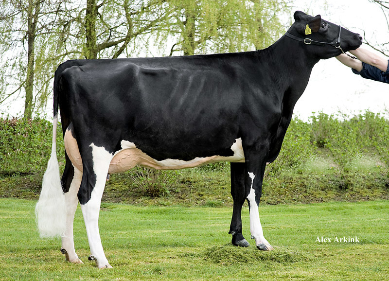 Three 2yr. Olds from the Meppelink herd (Twin Genetics) have reached high 2yr. Old scores. Ven Dairy Wonder dtr Twin Glamour 3 got the very high score of VG-88 2yr.! She was the head cow of one of the favourite progenygroups on the NRM 2014, Ven Dairy Wonder. In the individual show she won 2nd 2yr. old. The #1 GTPI Danillo dtr Willemshoeve Rita 6127 (Danillo x Ramos) scored VG-87 2yr. and the fancy Snowman dtr Holbra Lady Snow (Snowman x Prudence family) reached the same score!