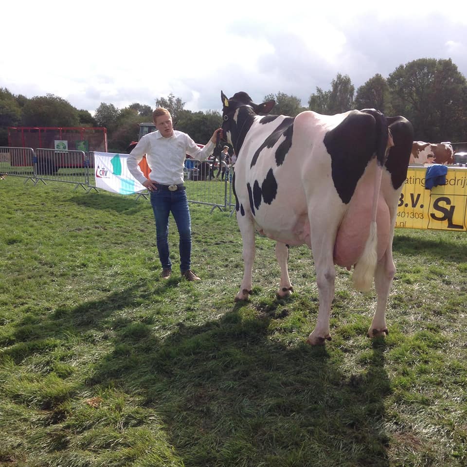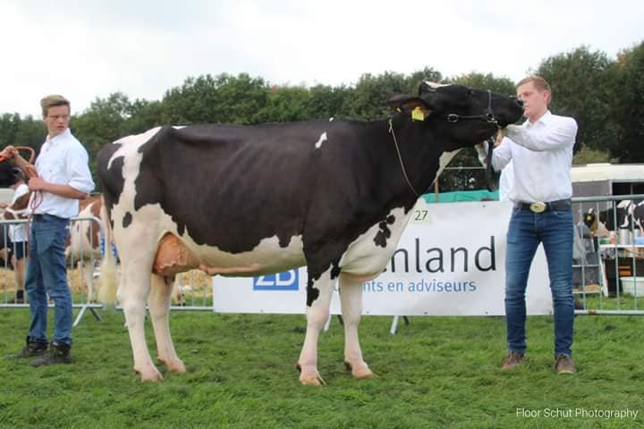 Last Saturday it was a successfull day for Holbra Holsteins in Laren! They became Res. Herd collection Champion and Res. Intermediate Champion with Holbra Miki! Holbra Holsteins participated at the show with 7 cows and came back in the finals with 6 of them! Holbra Sien (s. Talentino) was 2nd in her class and the well-known Gold Chip daughter Holbra Chica was 4th in her class at the Senior Championship B&W.