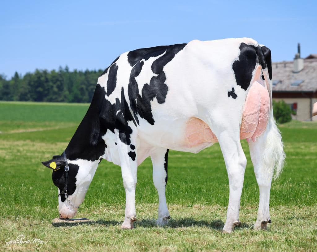 Hanna-Vray EX-96-CH her great genes are continuing at the next level with her fresh 2yr. olds sired by Haniko and Showking: Mattenhof Showking Hollande and Mattenhof Haniko Horsika! Mattenhof Showking Hollande calved for the first time at 1.09 yr., is recently pictured and looks really promising! She is the maternal sister to Mattenhof Harris (s. Delta-Lambda) @Semex at +15 Conformation and out of Mattenhof Tatoo Hope VG-87-CH La2. out of the Grand Champion Expo Bulle '22, Res. Udder Champion Expo Bulle '22, Udder Champion Jr. Expo Bulle '21, Res. Grand Champion Swiss Expo '20, Udder Champion Swiss Expo '20 and many more: Hanna-Vray EX-96-CH EX-98-MS! Another great 2yr. old is Mattenhof Haniko Horsika! She is a VG-85-CH 2yr. old with a VG-87 Mammary System and sired by Haniko. Her dam is Mattenhof Crushtime Horsine VG-88-CH La2. out of Hanna-Vray EX-96-CH. Another fresh 2yr. old from this family is MS Mirand Gracia P, she is a Mirand PP *RC grand daughter to Galys-Vray EX-94-CH, the full sister to Hanna-Vray EX-96-CH.