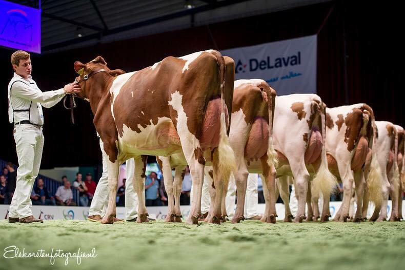 The incredible herd of Heerenbrink Holsteins from the Family Steegink is the #1 herd in the Netherlands for average classification score for R&W cows. 13 2yr. olds scored this year with an average score of VG-86,2! The big highlight for Heerenbrink Holsteins this year was the Championship Milkingheifers R&W at the National NRM show 2017 with Heerenbrink Dina 382 (s. Expression). Click further for more details.