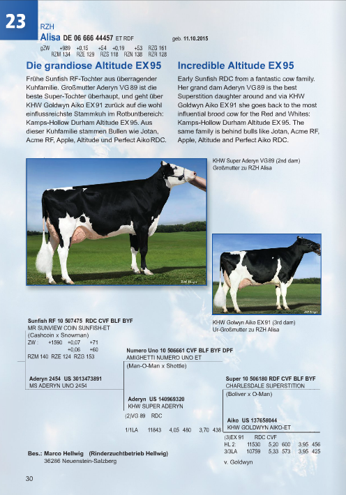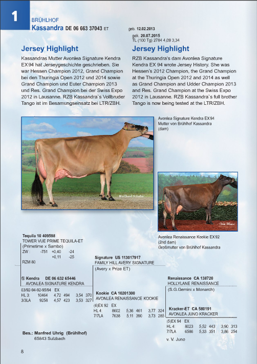 The Hessens Zukunft Sale 2016, organized by the German AI ZBH will be held on Saturday, February the 6th in the Hessenhalle, Alsfeld, Germany. Also consignments from Eurogenes members are selling, like a milking Tequila dtr of the Swiss Expo Jersey Grand Champion of 2013: Avonlea Signature Kendra EX-94-DE from Brühlhof Holstiens. RZH Holsteins sells a 161 RZG heifer sired by Sunfish, from a Numro Uno x Superstition x KHW Goldwyn Aiko EX-91-USA!