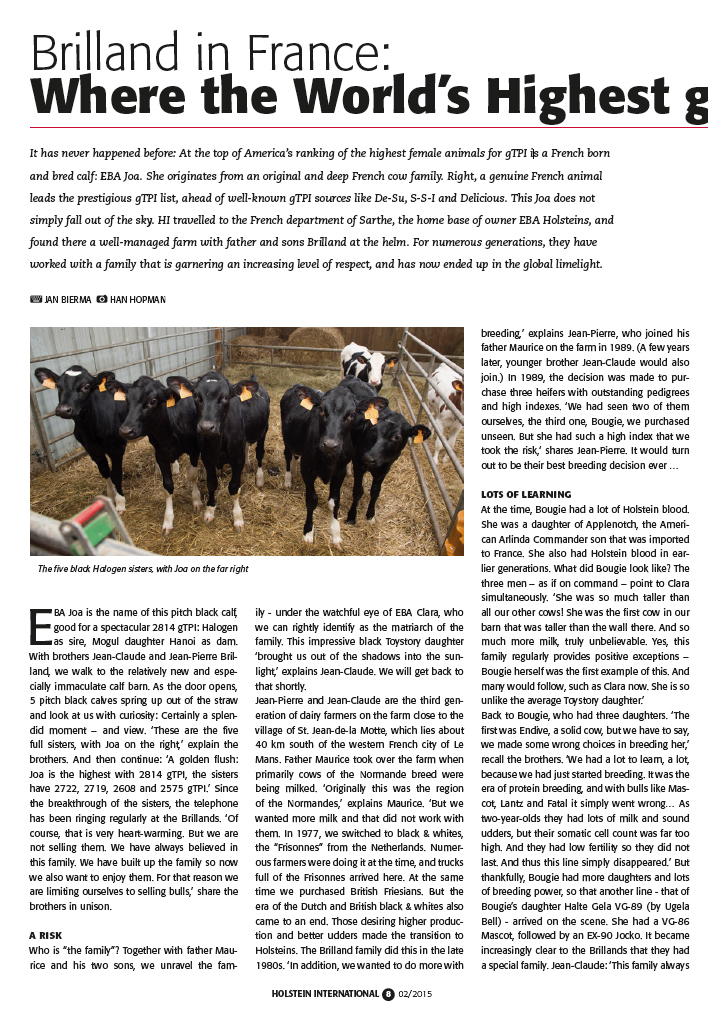 Holstein International article: GAEC Brilland / EBA Holsteins