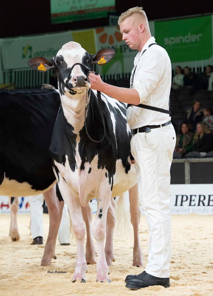 It was a phenomenal day for Hullcrest Holsteins at the Holland Holstein sHow were they extend their Junior Champion title!! BEL Solomon Cri (s. Solomon) the reigning Res. Junior Champion of the Swiss Expo 2019 first won her class and was later crowned as the Junior Champion of the Holland Holstein sHow. Last year Hullcrest Holsteins won the big title as well with a Solomon daughter: Chapelhill Solomon Prosecco. The Res. Junior Champion title went to Diamondback daughter Topcross Aukje 304.
