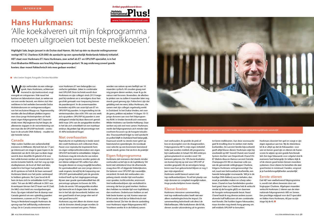 Hans Hurkmans of Hurkmans ET has been interviewed for Holstein International Plus a few weeks ago. He mentiones the strength of genomics and the value of his heifers to be growing into a great production cows as well. Click further to read the complete article.