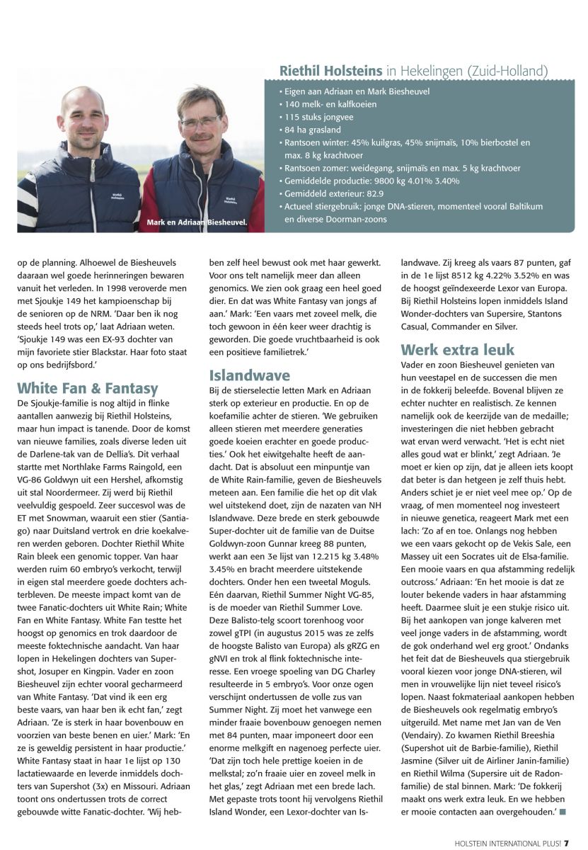 Click further for the Holsteins International Plus article about Riethil Holsteins: International cow families have provided success and extra satisfaction!