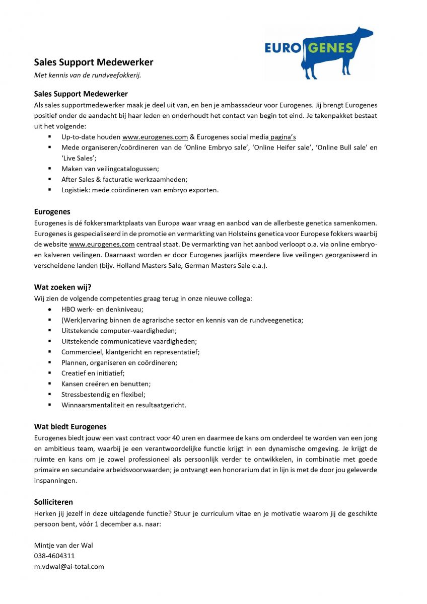 A very interesting JOB OFFER within Eurogenes: SALE SUPPORT employee. More info.
