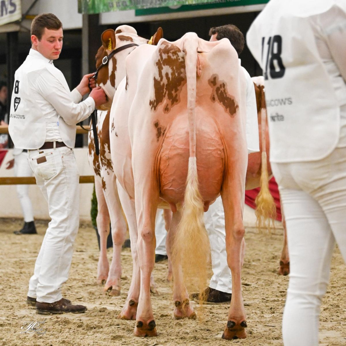 The four year old Lakeside Ups Ashtime is one of the hottest cows at the moment. She is bred by Lakeside Holsteins and sold as calf to Bosma Holsteins. The stunning Jordy-Red daughter became Reserve Champion Heifers at the Summershow Beilen 2019 for Bosma Holsteins. A couple months later became Ashtime 3rd in a class with 21 heifers at the National HHH-show 2019. As maiden heifer is she sold to Heerenbrink Holsteins were she is classified with VG-88-NL with VG-89 for her Mammary System as 2yr. old. Last weekend was it showtime for Lakeside Ups Ashtime! She got the title for 'Best Red' at the show! Ashtime is a Jordy-Red daughter straight out of a Defiant *RC from Damion daughter Lakeside Damion Ashlyn *RC VG-86-NL VG-88-MS 2yr. backed by the Grand Champion Royal Winter Fair 2001: Tri-Day Ashlyn EX-96-USA 2E GMD DOM 13*.