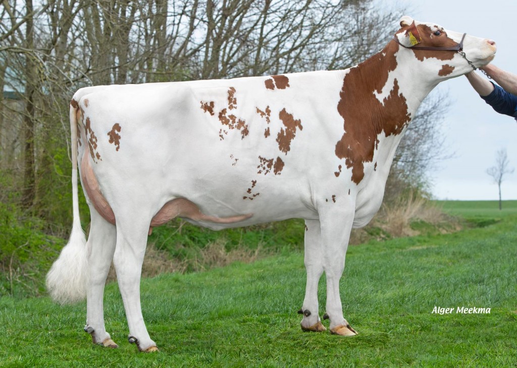 Lakeside Ups Red Range VG-86-NL VG-88-MS is the most influential Bull dam WORLDWIDE, she is the #1 Red Impact Cow 2021! With 16 sons in A.I. included the Canadian gLPI sensation Ranger-Red, is she named as favorite Red Cow. Red Range has a modern pedigree: Salvatore *RC x De Oosterhof DG Rose VG-89-NL (s. Rubicon) x Aikman x Man-o-Man backed by the Golden-Oaks Mark Prudence EX-95-USA family. Red Range is bred by Lakeside / Upstream Holsteins and sold to Koepon.