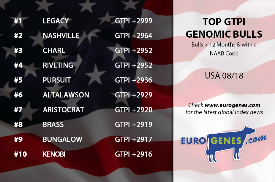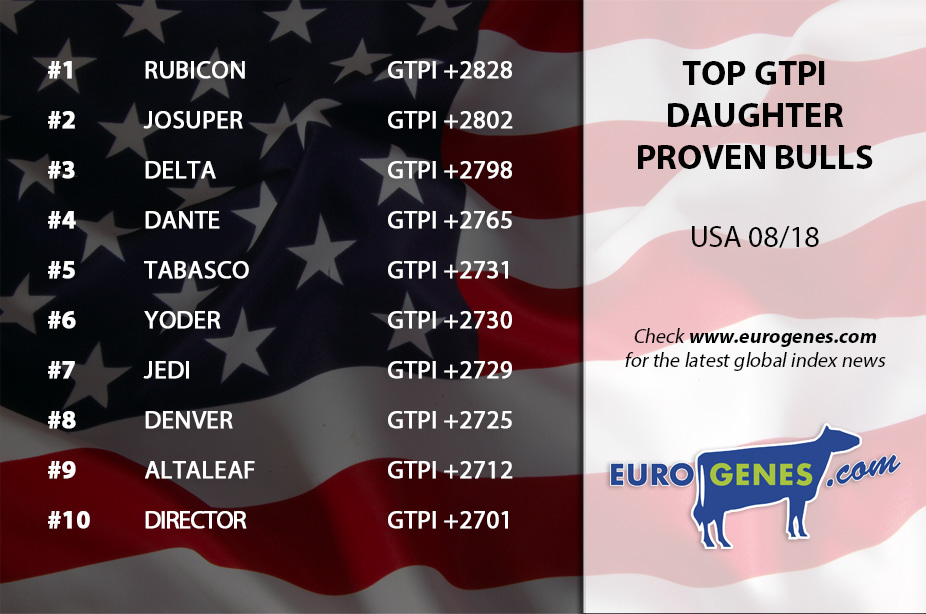 The new American August index run made a lot of increase in GTPI. The new GTPI topper is Legacy with +2999 GTPI and +1133 NM$ follewed by Nashville who notes +2964 GTPI. Charl increased his TPI score with 50 points to +2952 GTPI he combines this with +1107 NM$! Also Aristocrat is standing in the top 10 at the #7 with +2920 GTPI & +2.90 PTAT!! In the daugther proven list is Rubicon the new #1 with +2828 GTPI & +2.28 PTAT. Josuper drops to the second place with +2802 GTPI. Also Delta drops one place to the third position with +2775 GTPI.