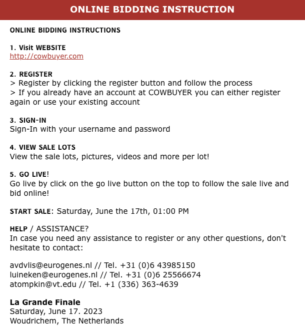COUNTDOWN! Only 4 days left before the La Grande Finale will taking place on Saturday, June the 17th 2023 at JK Eder Holsteins in Woudrichem (NL). The Final Sale of 40 years JK Eder breeding! For those who can't attend the sale there is an option to follow the sale live and place bids through COWBUYER.COM.