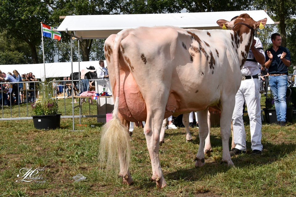 It was again time for the Rundvee Show Noord (RSN-Show) in Lhee last Saturday. Several Eurogenes members participated at this provincial show of Northern-Netherlands. The first title of the day went to Hullcrest Holsteins with winning Junior Champion with Bel Bag2 Chief Camilla (s. Chief). The reserve title of the heifers went to Bosma Holsteins with their Lakeside Ups Ashtime (s. Jordy-Red), co-owned with Heerenbrink Holsteins. Their was also many success for Giessen Holsteins with winning 2-Yr Old Champion B&W with Giessen Charity 138, 2-Yr Old Champion R&W with Giessen Cecibell 10 & Intermediate Champion R&W with Giessen Cecibell 8. Giessen Holsteins won with their incredible herdgroup the Black & White Herdgroup title. At the Junior Show the herdgroup title went to Hullcrest Holsteins.