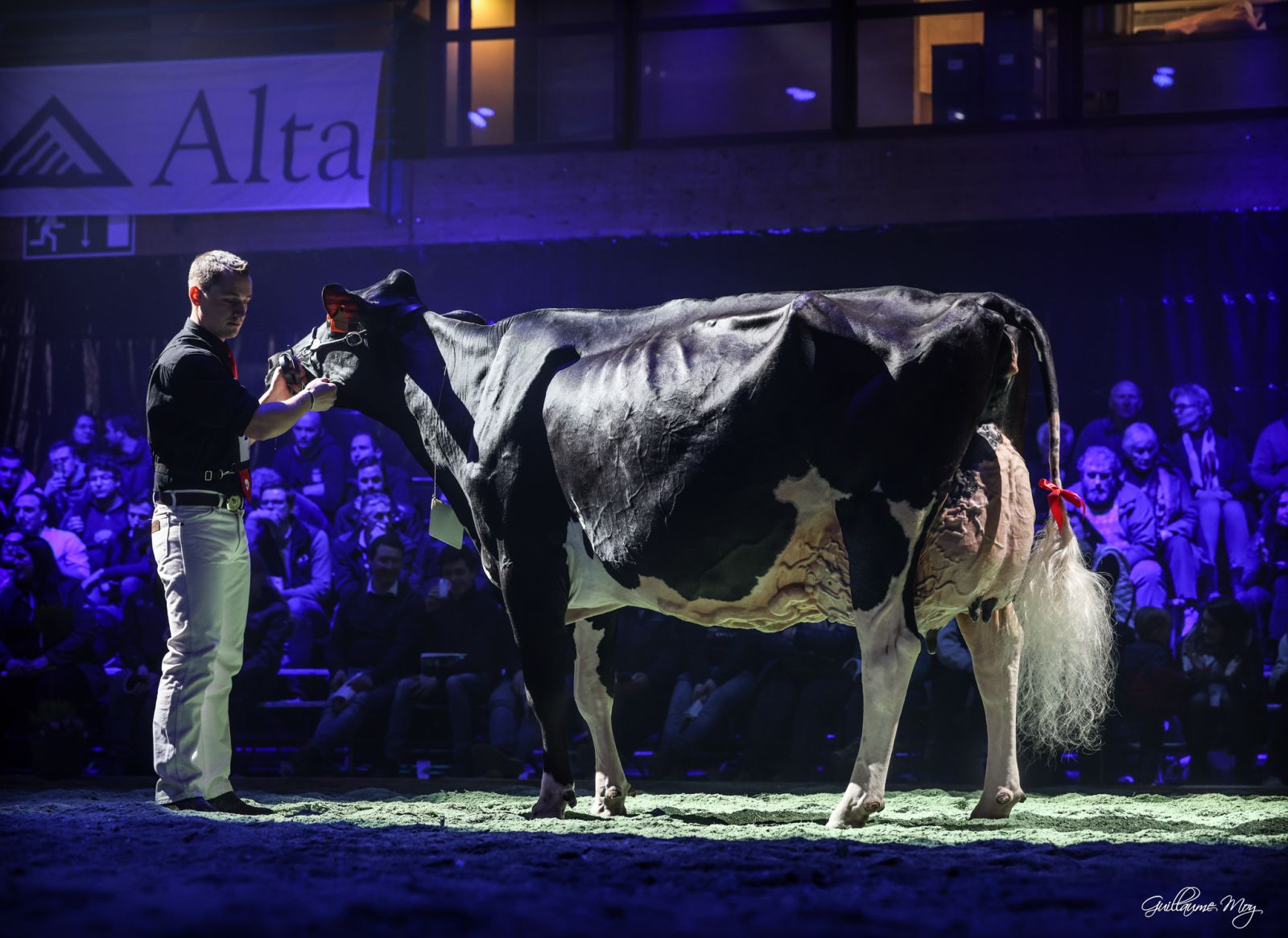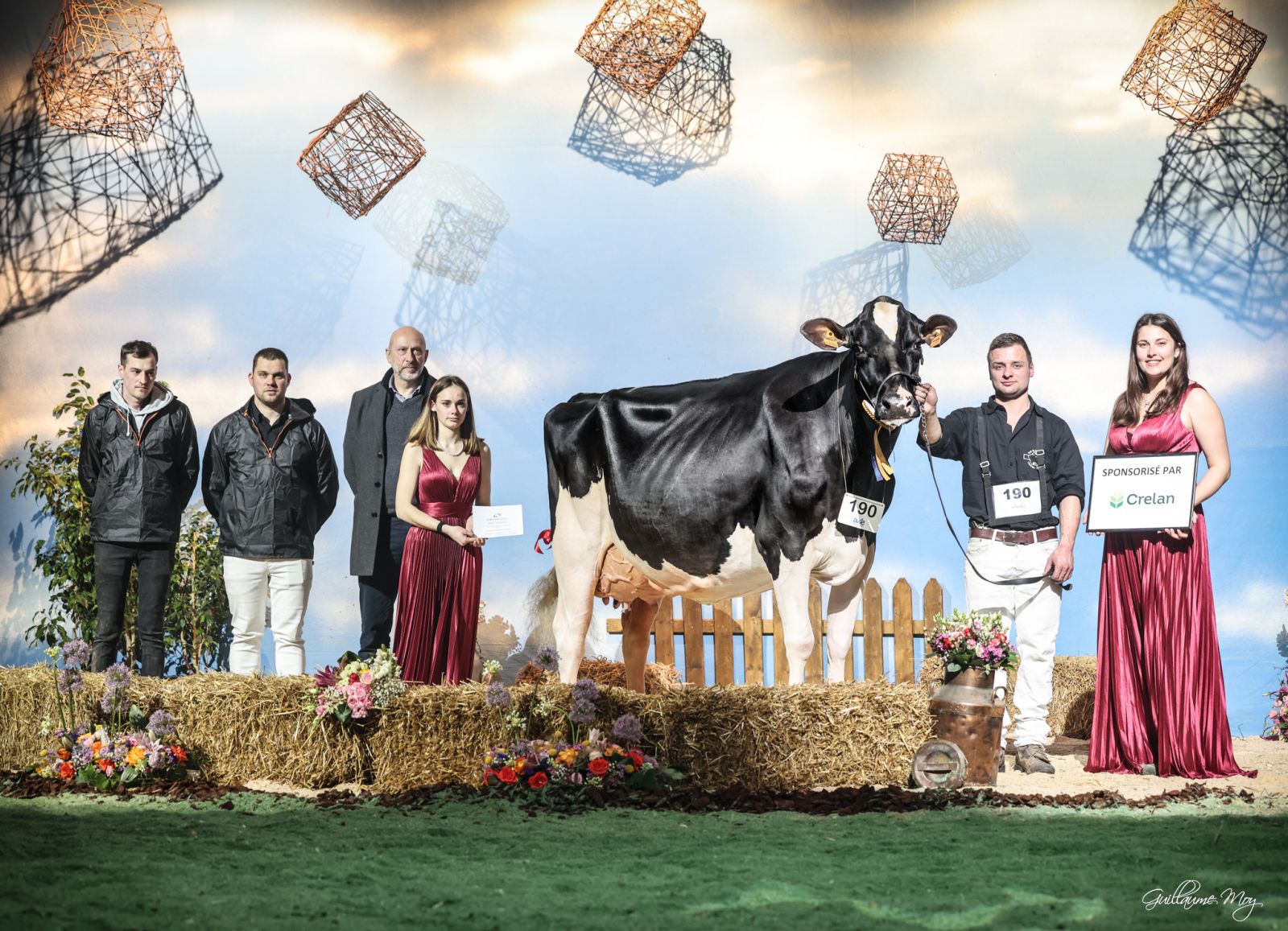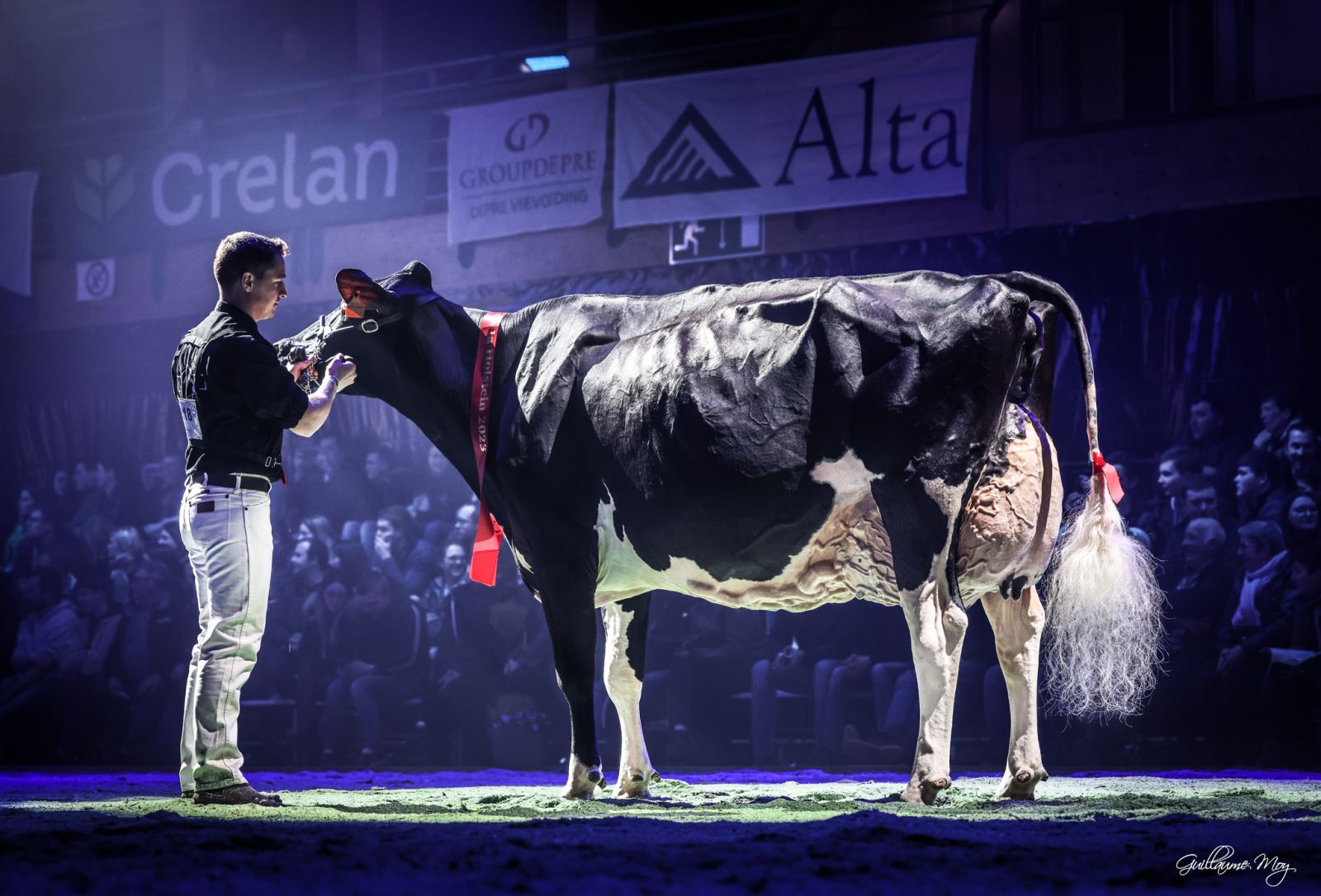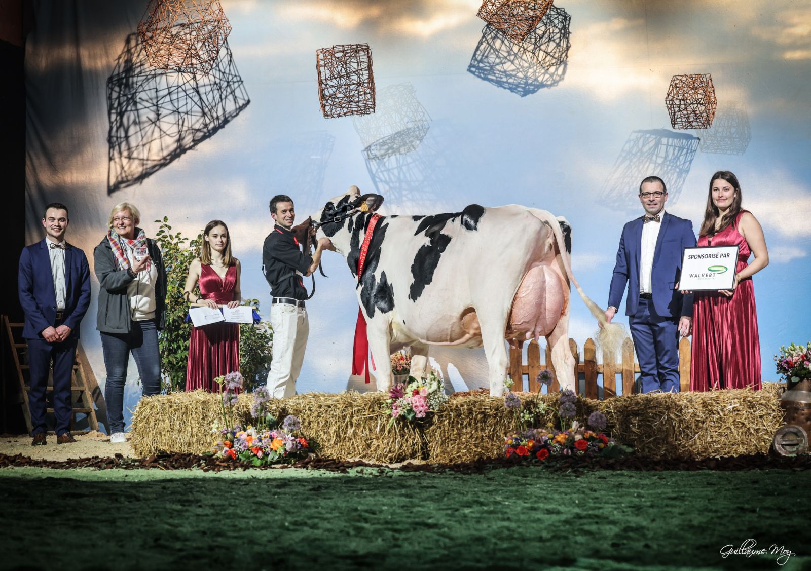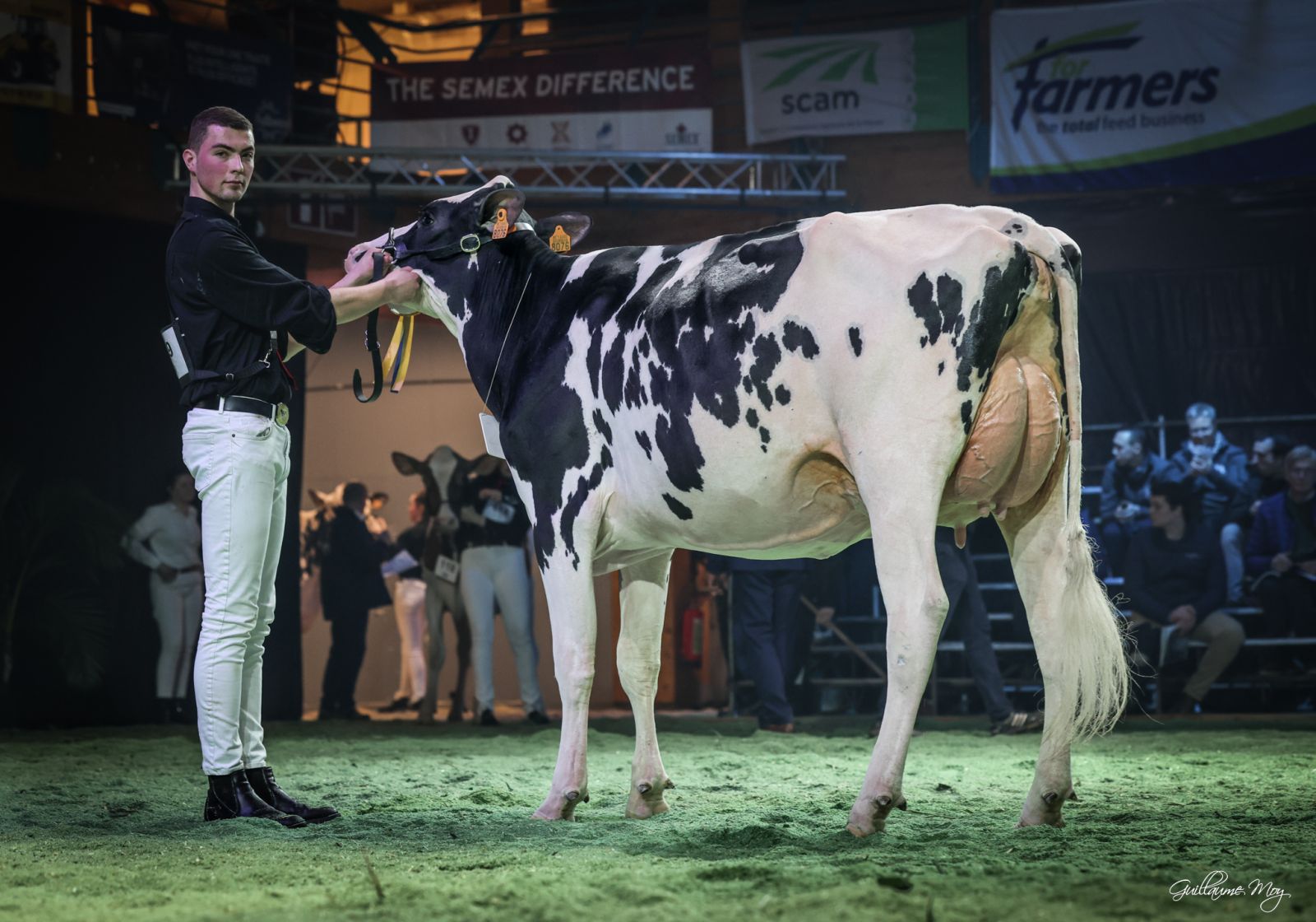 ME.Dal Long P Dandy P is crowned as the Grand Champion Nuit de La Holstein 2023! This incredible Long P daughter won the Senior Champion title and became later on the Grand Champion of the show! Me.Dal Long P Dandy P is sold for 19.000 EUR in the European Masters Sale 2019 during the European show in Libramont to Rising Star Holsteins from Luxembourg and was the next day directly successful for her new owners with winning Intermediate European Champion 2019! She became in 2020 also Grand Champion Agrimax Metz. Hullcrest Sublime became 1st in her class with Intermediate Cows and won the ribbon for Best Udder of her class. She is sold as embryo from Hullcrest Holsteins to Holstein Bosseler (LUX). The Udder Champion title was for Hanika De Bois Seigneur, she was also classwinner of the 4th class and became Intermediate Champion. The 2yr. old Champion title was voor pretty Mirand PP *RC daughter Koala De Doyon.
