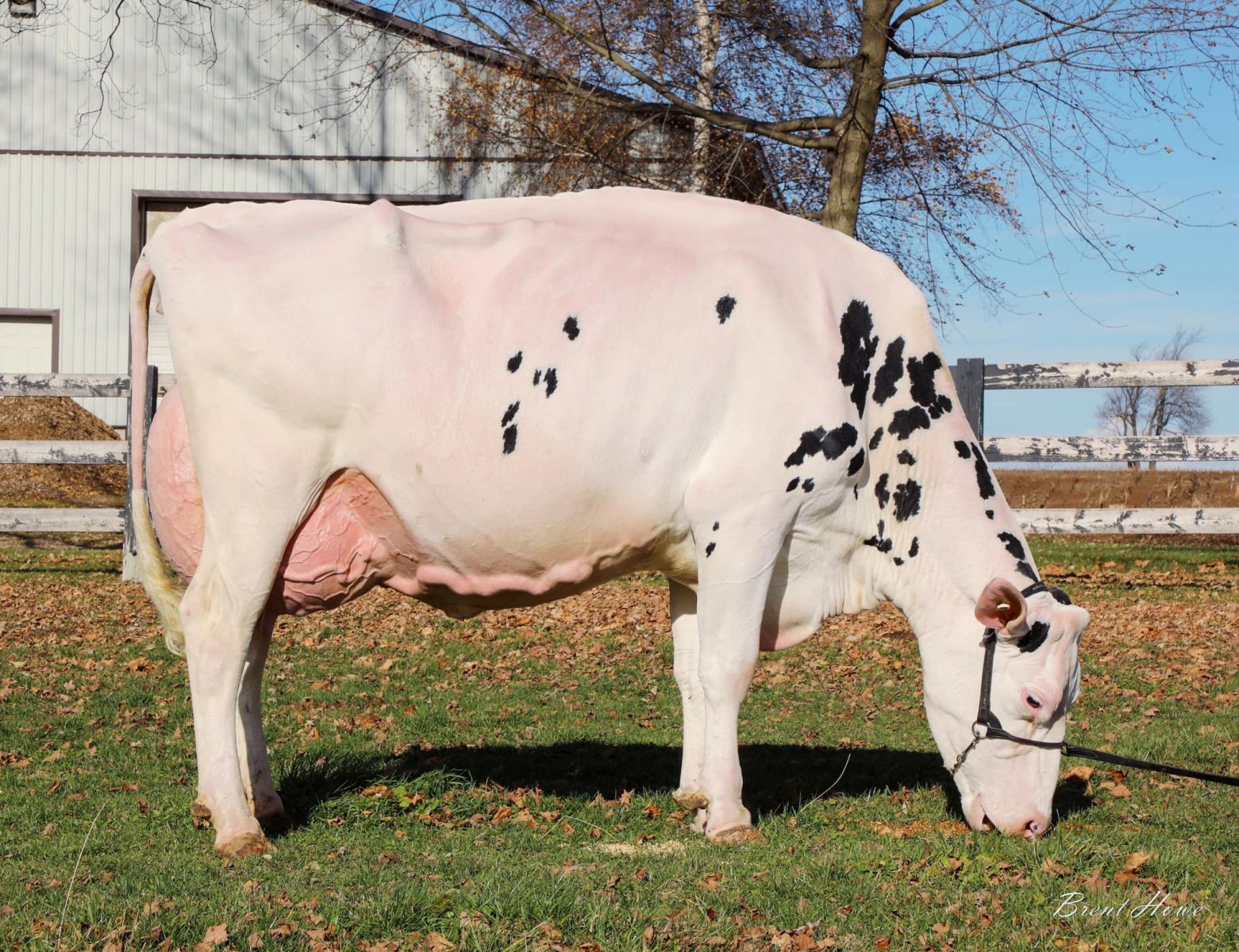 The Australian-born Mirand PP *RC made an international breakthrough a year ago because he not only promised to inherit high conformation but also was a carrier of the red factor and even more special Homozygous Polled. His high daughters are now very successful at inspections in Canada and Switzerland, where his semen was already available. Now his daughters also storm the conformation lists, in the polled area there is no bull that can compete with his daughters, but the Mirand daughters can also compete effortlessly with the highest black-and-white offspring. For example, DGF Jolien P is ranked 3rd out of all animals tested in January on conformation. DGF Jolien is a Mirand daughter who goes back via a Kingdoc doctor to Ralma Finley Chuckle VG-88, a grand daughter of Ralma Juror Faith EX-91. With +3.52 PTAT and carrier of the polled gene, she can boast a lot of global breeding interest.