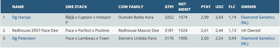 Today is it time for a great new ranking with top GTPI females above >+3050 GTPI in combination with >+2.50 PTAT (type) in Europe based on the December '24 index proof. Siemers Cway Pace daughters have a lot of influence in this ranking! This time a new chart topper at +3252 GTPI in combination with +2.99 PTAT and sired by Pace: DG Hansje backed by the European 2yr. old Champion '06: Batke Outside Kora EX-94-DE. She is followed by another Pace daughter from Spain at +3181 GTPI in combination with +2.61 PTAT and making the stage complete with DG Pertersion. She is another Pace daughter at +3176 GTPI in combination with +2.60 PTAT and goes back to Siemers Lmbda Paris EX-91-USA! Paris EX-91 is dam to the daughterproven GTPI sire: Siemers Rengd Parfect and to Siemers Roztac, Siemers Parx, Siemers Paristore, Siemers Pazzle, Siemers Parceive and many more!