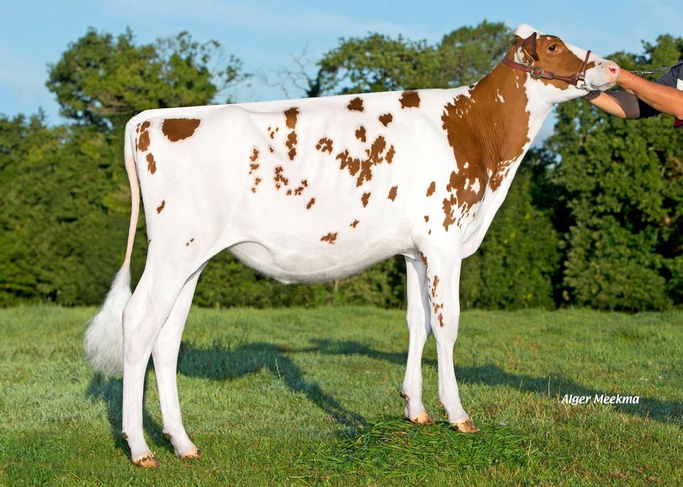 Take your chance now! The dam to the donor of lot 7 in the Online Embryo Sale has been pictured this week! KCCK Jordy Annise-Red VG-87-USA 2yr. is the full sister to the #1 Red & White Conformation sire in the breed: KCCK Amaretto-Red (+15 Conf.) @ ST-Genetics. Selling out of her Altitude-Red daughter are FEMALE embryos by Siemers STARS *RC (+2.76 PTAT / +10 Conf.) your chance on the new R&W chart topper with a Parent Average of +2.92 PTAT / +11 Conformation.
