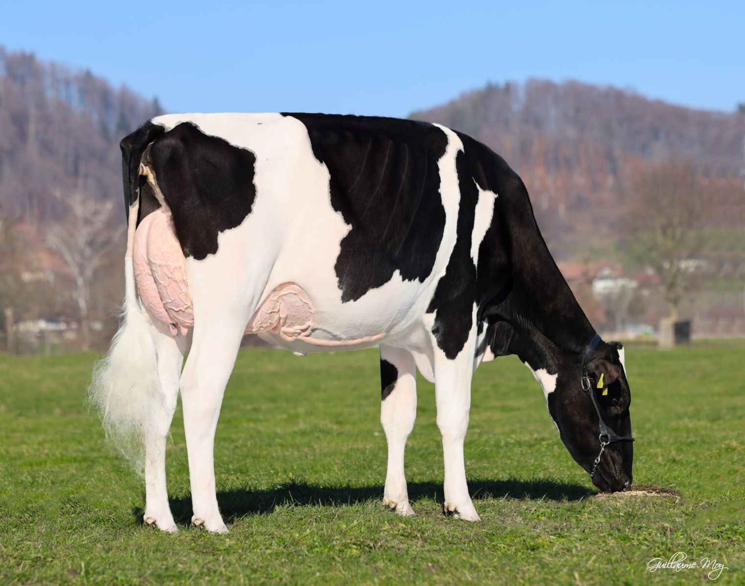 The Grand Champion of the Junior Expo Thun 2022: Fankis Armagedon Australia P has recently been pictured by Guillaume Moy Photographies! She is getting better and better and won multiple shows more already, like: Supreme Champion Heifer at the Jr. Expo Thun 2021. She is sired by NH DG Armagedon P @Ai-Total. His first daughters are now 2yr. old and in milk and looks very promising! Armagedon P is a Splendid P *RC son and maternal brother to the type sensation NH DG Arrow @Ai-Total out of Al-Lew Monterey Ashley EX-94-USA. Ashley EX-94 is a great broodcow with many successfull progeny, like NH DG Crushabull Atlantis VG-87-CH La2. The Splendid P *RC son shows amazing TYPE traits in his US-index with +2556 GTPI / +3.09 PTAT and +2.65 UDC! He has also +582kgM with +0.12% Fat and +0.06% Protein. At the Expo Bulle, held on March 24th and 25th are many Armagedon P and Arrow daughters entering the showring!