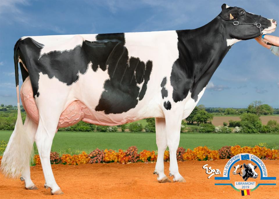 During the European Show Du Bon Vent Inkapi EX-93-IT impressed again a lot of vistors! This stunning Brawler daughter has already a long victory list with winning HM. Grand Champion Montichiari Show '19, 2nd in her section Swiss Expo '19, HM. Senior Champion Cremona '19, Res. Grand Champion Swiss Expo '17, Int. Champion and Best Udder Swiss Expo '16, Res. 2-Yr Old Champin Space and many more! In Libramont she showed again her strenght and took the second place in class 9 behind the Grand Champion, Du Rahun Chelios Heline. Inkapi is owned by Al.Be.Ro, Bel Holstein, Bag2, Lorenz Bach & Luca F. Sarreri. Hullcrest Holsteins has two promising daughters of Inkapi by Solomon and Chief.