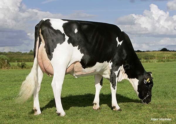 Dam is one of the first daughters of Man-O-Man in milk in Europe