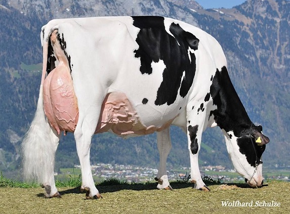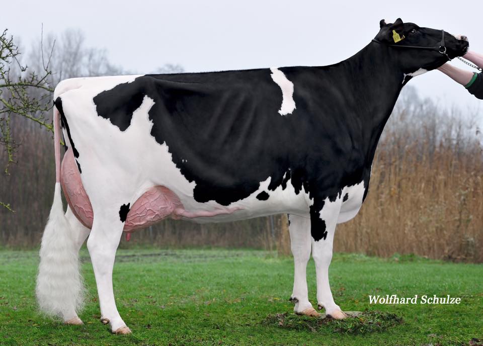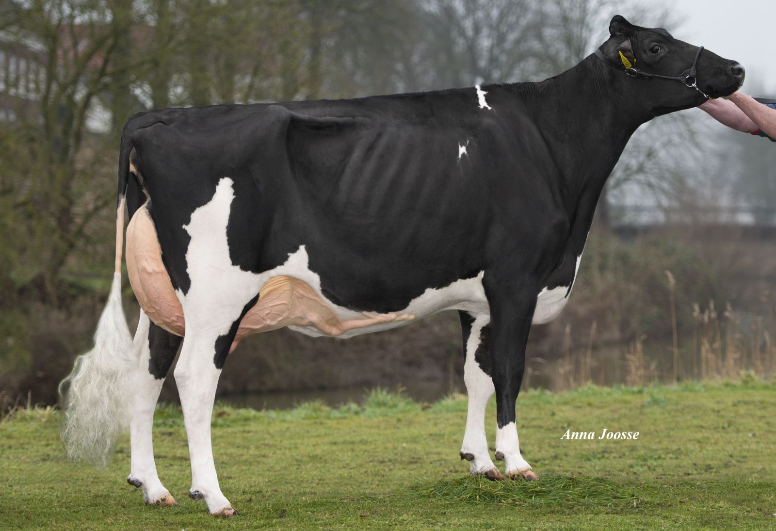 The incredible Wilcor Goldwyn O'Kadabra VG-88-NL 2yr. is recently pictured again, fresh in her 2nd lactation! This amazing Goldwyn daughter was BEST UDDER & HM. 2yr. Old Champion at the National HHH-Show 2016, UDDER CHAMPION & HM. 2yr. Old Champion Wintershow Pesse 2015 and a grand daughter of the one and only Decrausaz O'Kalibra EX-97-CH. O'Kadabra was also topseller of the Schau der Besten Sale 2015 for 35.000 EUR and straight out 3 EXCELLENT dams. Her dam is the SID daughter GS Alliance Sid O'Kamila *RC EX-90-DE, who was successful at the Schau der Besten and has many daughters deliverd who sold for record prices. Grand dam O'Kalibra was 3 times Grand Champion of the Swiss Expo, European Champion in 2013 and was the most infulential cow of Switzerland in 2013. O'Kadabra is already creating her own legacy with Sondeler Kadabra (s. Gold Chip), who was 3rd in her section at the Summershow Beilein '17 and is due March '19.