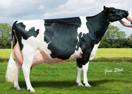 Click further for the newest pictures of one of the greatest cows in the UK: Goldwyn-daughter, Richaven Goldwyn Adrienne EX-93-UK 2E! Adrienne is one of the very best Cow ever at Richaven Holsteins, She was dubble Sr. Champion at the National All-Breeds Show in 2011 & 2012 and received the maximum score in every lactation so far. Adrienne is out of a very deep Canadian Cow family with extremely high lifetime productions.