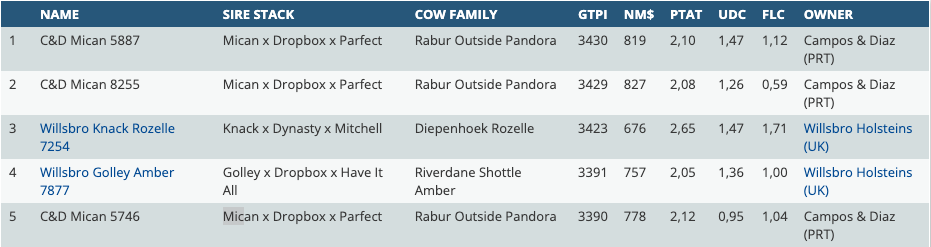 Today it's time for a great new ranking with females in Europe at >3200 GTPI in combination with >2.00 PTAT! We will introduce you the top 25 females in Europe based on the December 2025 proof where you can find early daughters of Mican, Golley, Hi-Worth and more. Charttopper in this ranking is a Mican daughter from Portugal going back on Rabur Outside Pandora at +3430 GTPI in combination with +2.10 PTAT. In second follows her full sister at +3429 GTPI with +2.08 PTAT. Making the top 3 complete with a Knack daughter from the United Kingdom with Willsbro Knack Rozelle 7254 at +3423 GTPI with +2.65 PTAT!