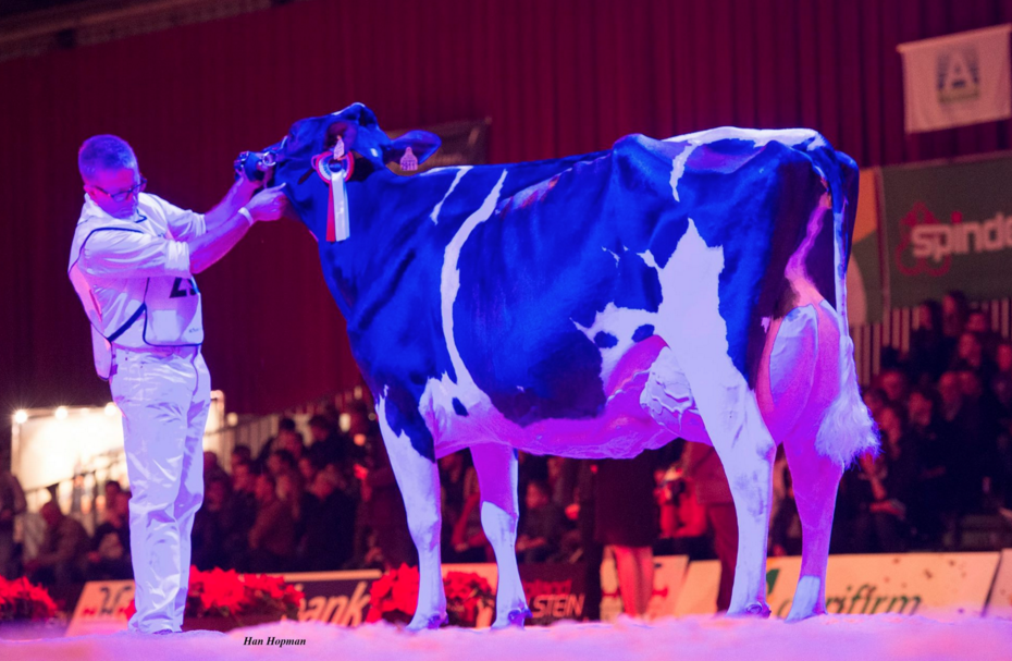 Between all great show vicotires, the HHH show 2015 have been one of the greatest show results ever for Drouner Holsteins of the family Albring, the Netherlands. Pat Conroy from the USA tapped Drouner AJDH Cosmo as the milkingheifer Champion, Scooby-Duu daughter Drouner Ria 1038 Res. Sr. Champion and Drouner Holsteins won the Best Herdgroup B&W of the show! Now the 2 champions have been classified again with the maximum score of VG-89-NL 2yr. for Drouner AJDH Cosmo and EX-91 for Drouner Ria 1038. Click further for more info and pictures.
