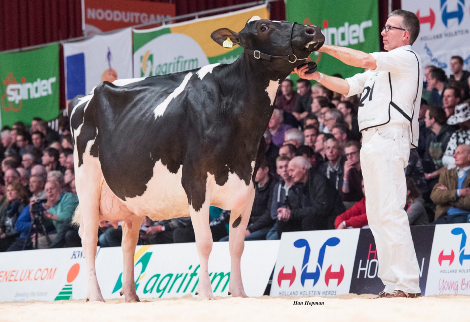 Drouner Ria 1038 was the Res. Senior Champion during the HHH show 2015, her new score is EX-91 with a EX udder, 92 Feet & Legs and EX-91 Frame. She is a Scooby-Duu daughter out of the homebred Ria cow family which excels in great type. her grand dam is the maternal sister to Drouner Ria 745 EX-92-NL (s. CB Allen) which was the HHH Grand Champion of 2008!