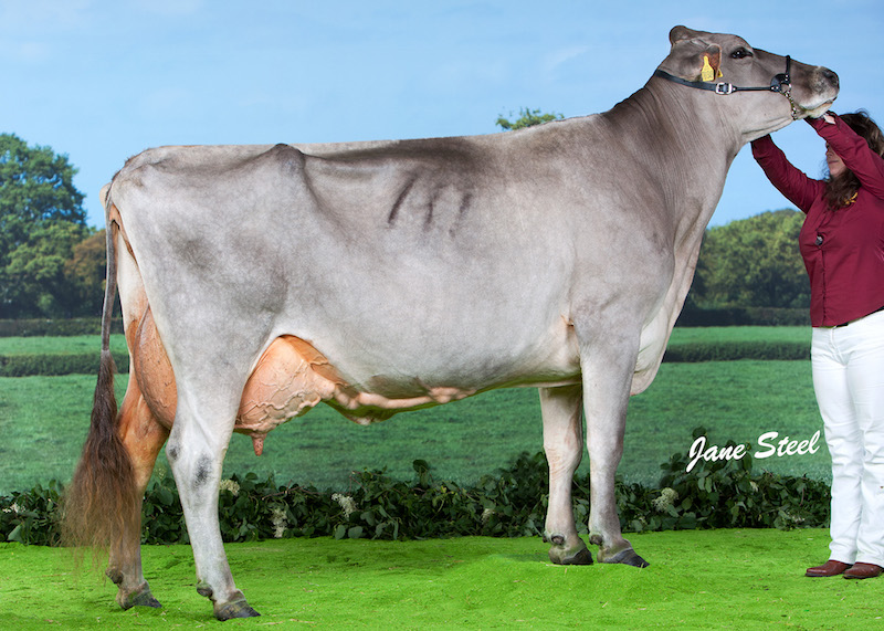 Old Mill Starbuck Spottie EX-94-UK is doing well at Kedar Brown Swiss in the United Kingdom and recently celebrated her 15th birthday!! She still looks great and turned out to be a super transmitter as well!! So far she has 8 EXCELLENT daughters, 7 Very Good daughters and 7 Very Good grand daughters in the United Kingdom alone. Also several embryos from this fantastic show cow are sold all around Europe. Like her owners, the Lochhead family, mentions: '' We believe she is one of the all time great brood cows in the world and enquiries always welcome.'' Spottie has won multiple titles like: 1st Senior Cow & H.M. Grand Champion UK National 2013 and is a direct daughter to the LEGEND: Old Mill E Snickerdoodle EX-94-USA - 6x GRAND CHAMPION at World Dairy Expo, Madison.
