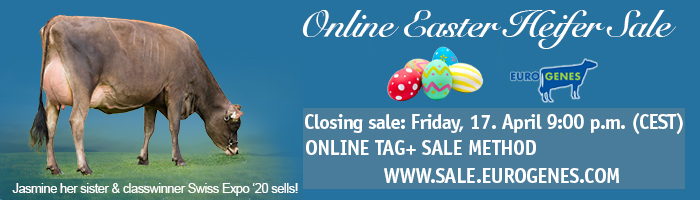 Fasten your seatbelts! It's time for the Online EASTER Heifer Sale, which have been started a couple minutes ago. This sale propably offers the best line-up we ever had in a Online Sale! Selling are: Bons-Holsteins Koba 191 EX-94-NL her Solomon daughter, +2756 GTPI (BB/ A2A2) Kenobi grand daughter of Al-Lew Monterey Ashley EX-90-USA @ FLUSH AGE, 1st Choice FEMALE sired by CHIEF from the VG-86-FR full sister to Hanna-Vray EX-95-CH & Galys-Vray EX-94-CH, the classwinner Jersey show Swiss Expo 2020, +2852 GTPI Riveting heifer from the Classy's, R&W Reeve-Red daughter from the Bons-Holsteins Aaltje's, FRESH sister to BLUES-RED (+2610 GTPI) and many more. Shop your EASTER presents now and visit WWW.SALE.EUROGENES.COM.